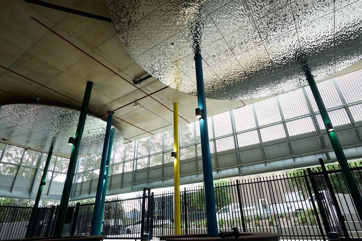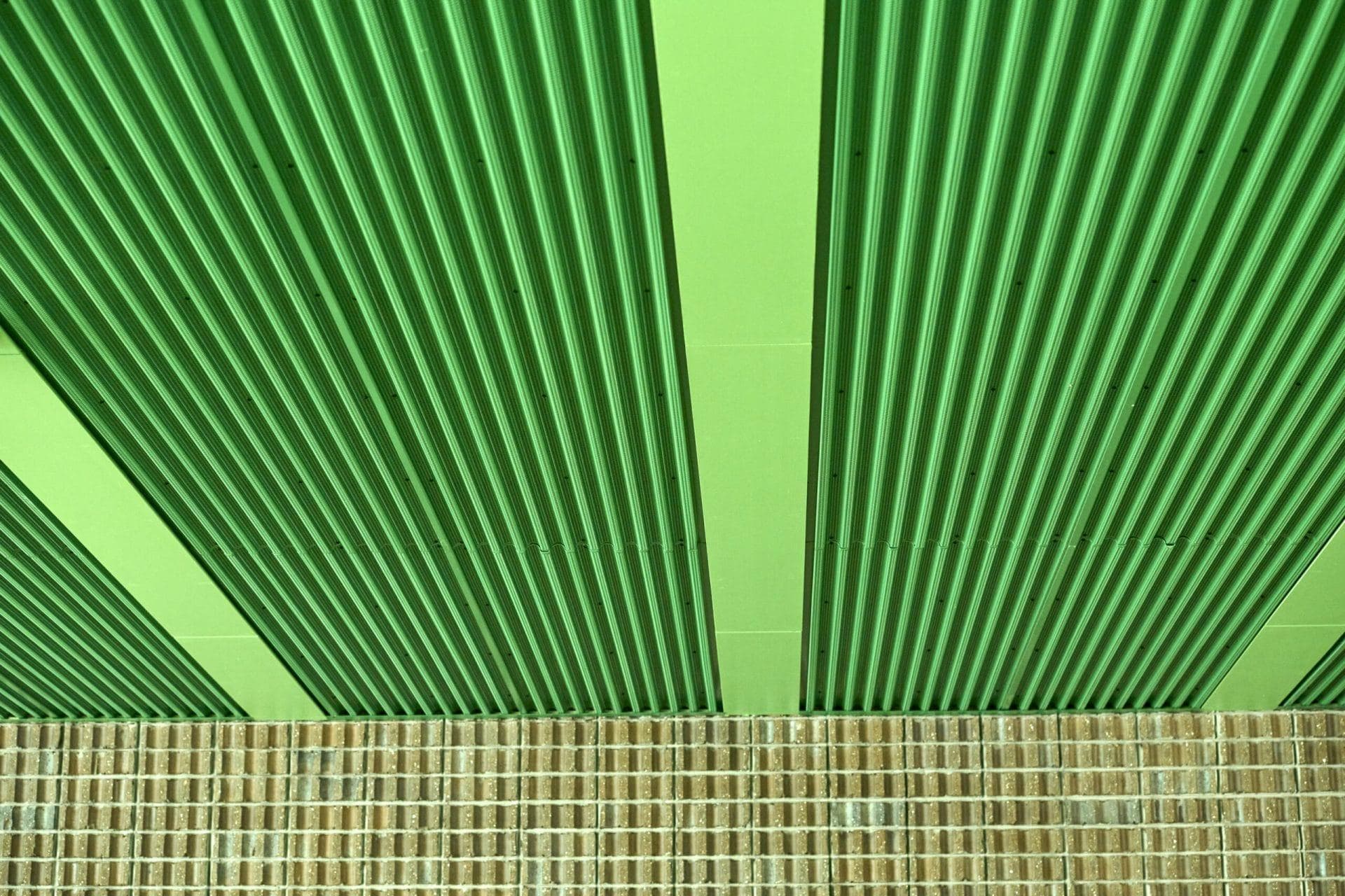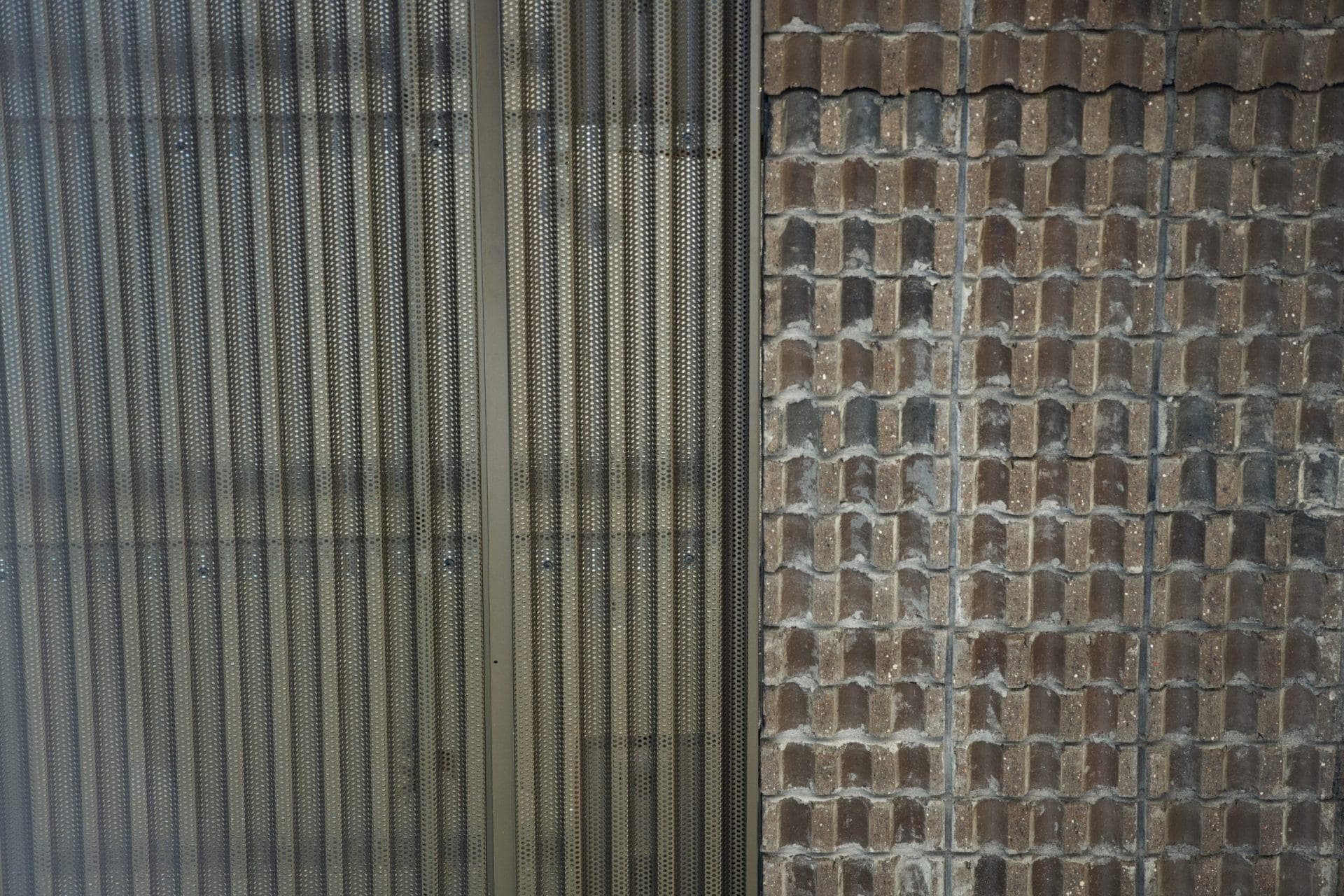Custom corrugated perforated ceiling and wall panels to match exterior brickwork, Heavy-duty impact resistant mesh, durlums S7 decorative stainless steel panels