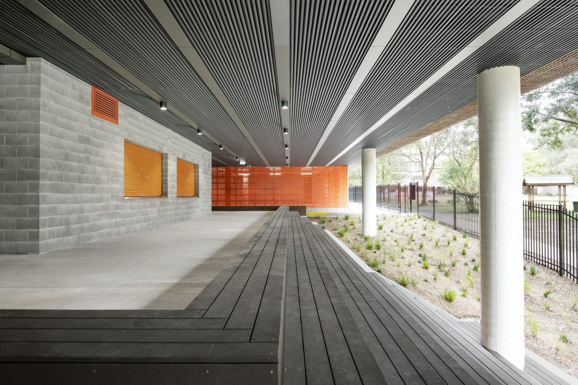 durlum was engaged for the covered outdoor areas (learning & recreational), outdoor passageways, gymnasium and the school hall, as they were able to fulfil Woods Bagot’s design brief. The durlum design team worked closely with Woods Bagot and the interiors contractor X-clusive Group throughout the project lifecycle from the conceptual design, CAD drawings, prototypes through to the shop drawings for final sign off and production.
